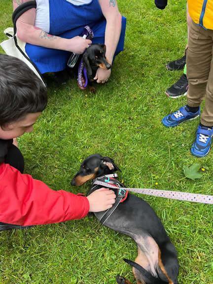 A great fun-filled afternoon with smiling chatting people and relaxed and sociable, friendly dogs.